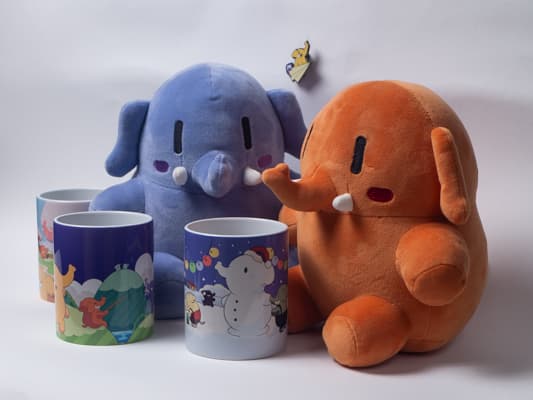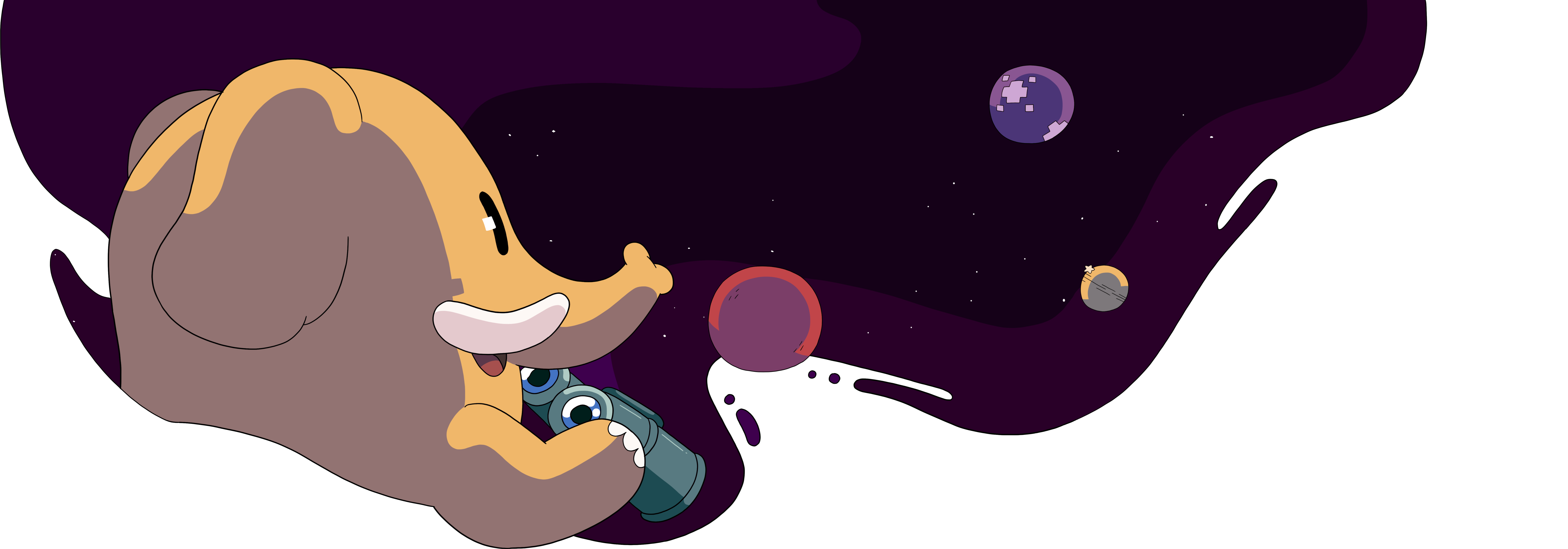 Illustration of elephant characters on a globe.